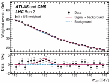 图二:ATLAS和CMS联合测量H→Zγ稀有衰变过程的Zγ质量谱
